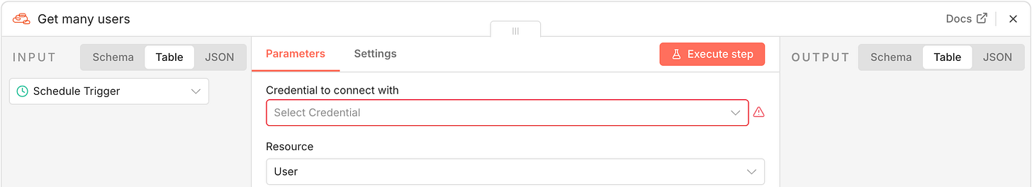I’ll pre-emptively mention setting up credentials, which you will have to do in the next step. When you add your first action in a minute you will be presented with the ‘Credential to connect with’ box in red.